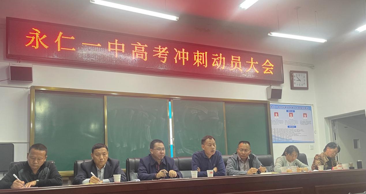 4月10日晚,永仁县人民政府副县长罗立志、陈元春等领导和县教体局班子一道,赴永仁一中指导参加2022届高考冲刺动员大会。