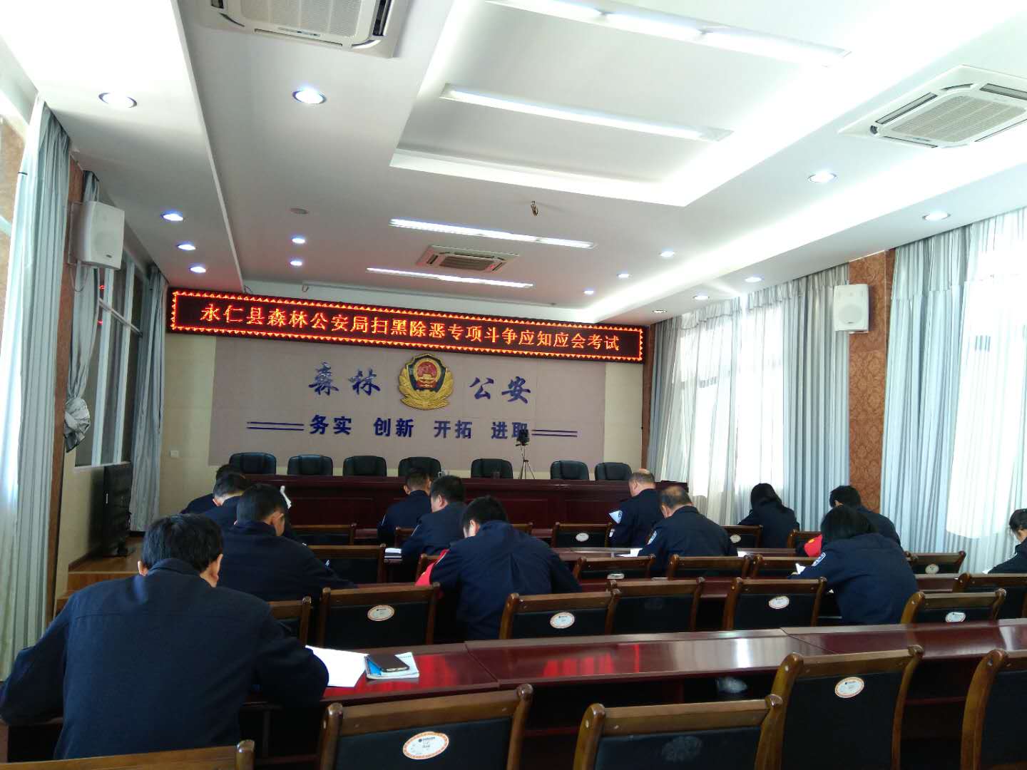 为让民警做到对扫黑除恶专项斗争基础知识熟知熟记,坚决把全体民警的思想行动统一到中央重大决策部署上来,3月5日,永仁县森林公安局组织全局民警在局五楼会议室开展扫黑除恶专项斗争应知应会知识考试。全局共20名民警参加了考试。