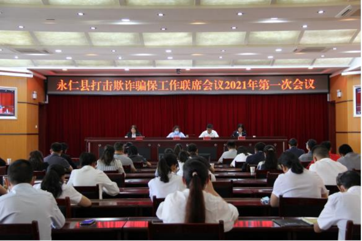 召开一次联席会议。组建领导机构,制定联席会议制度,4月21日召开了永仁县打击欺诈骗保工作联席会议2021年第一次会议,共计140余人参加会议。会上观看太和县骗保事件视频和全国第一、二期骗保典型案例,通报全县当前医保基金监管形势并安排2021年度基金监管工作和医保基金监管集中宣传月工作,县级5家定点医疗机构和7个乡镇卫生院签订了“规范诊疗行为、依法规范使用基金”承诺书。
