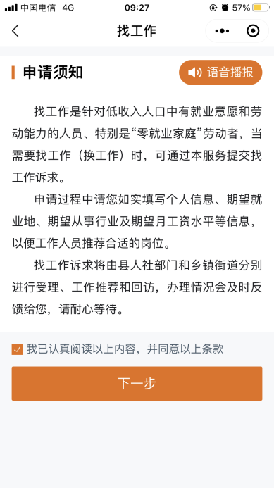 点击“您有就业困难吗?”,选择“您要找工作吗?”进入申请页面。