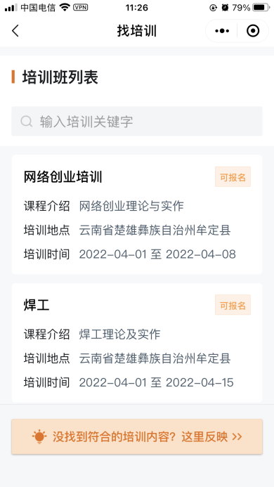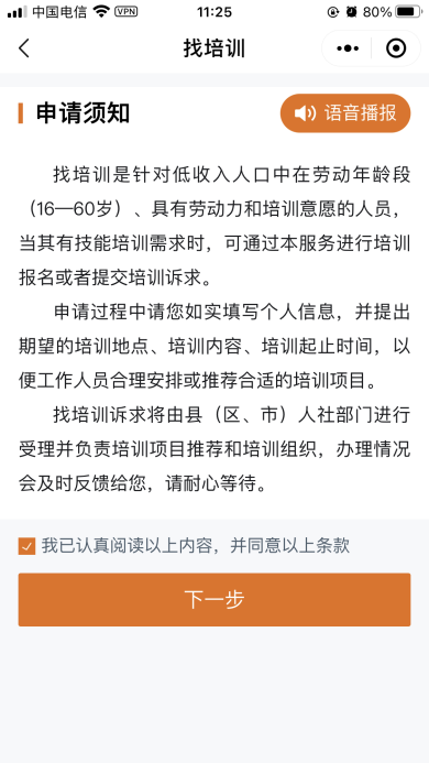 找培训是针对低收入人口中在劳动年龄段(16—60岁)、具有劳动力和培训意愿的人员,当其有技能培训需求时,可通过本服务进行培训报名或者提交培训诉求。申请过程中需要您积极配合如实填报相关情况,具体信息请进入小程序参阅申请须知。