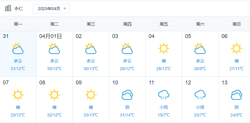 五、永仁县辖区清明节期间天气情况