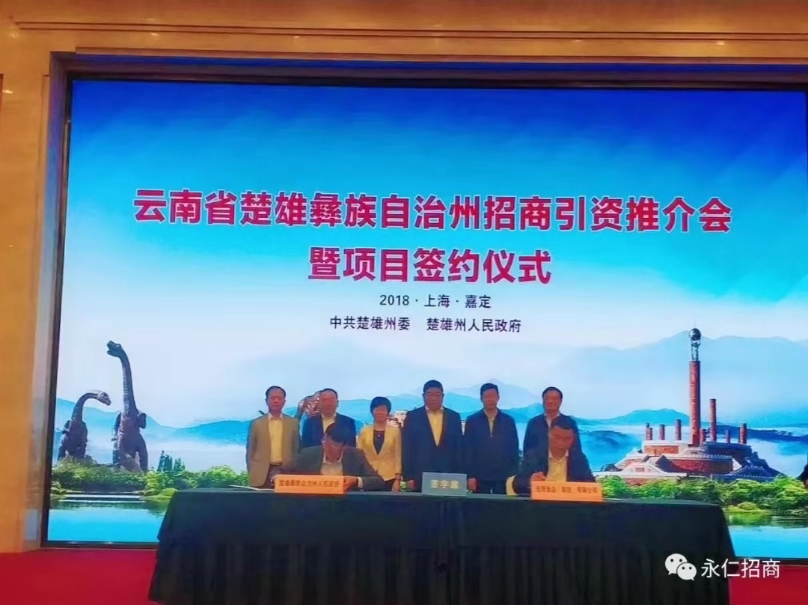 2018年10月19日,在上海市委市政府、嘉定区委区政府及云南省政府驻上海办事处的大力支持下,由楚雄州招商合作局承办的楚雄州2018年上海招商引资推介会暨项目签约仪式在上海嘉定区蓝宫大饭店成功举办,我县由中共永仁县委书记杨仕坤同志带队,县招商合作局局长孙永林同志及相关工作人员参加本次推介会并在所设项目洽谈区开展项目精准对接工作。