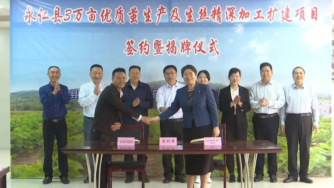 签约仪式上,莒县海通茧丝绸(集团)有限公司董事长安霞就永仁县优质茧生产及生丝精深加工扩建项目作了介绍,该项目将在永仁现有蚕桑种植面积基础上,发展到3万亩以上成龄桑优质茧生产基地,建设生丝精深加工工厂;建设建筑面积约5万平方米的蚕茧收烘区、生产加工区、仓储区、办公区、污水处理站、综合服务配套设施等,达到年产高档白厂丝320吨和高档丝绸制品5万套的生产能力。