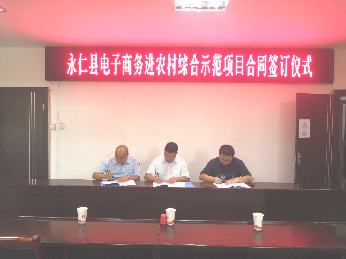 2020年6月30日,永仁县电子商务进农村综合示范项目正式签约启动。在永仁县工信商务科技局会议室,永仁县工信商务科技局与永仁兴红农业开发有限公司、杭州智盾信息技术有限公司签订合作协议。