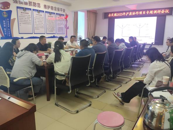 实地踏勘结束后,集中召开2023年永定镇沪滇协作项目分析研判工作会议。会议听取了项目实施主体单位项目实施方案编制情况汇报,各要素保障部门结合项目实地踏勘情况,简要汇报项目涉及要素保障修订及工作建议。