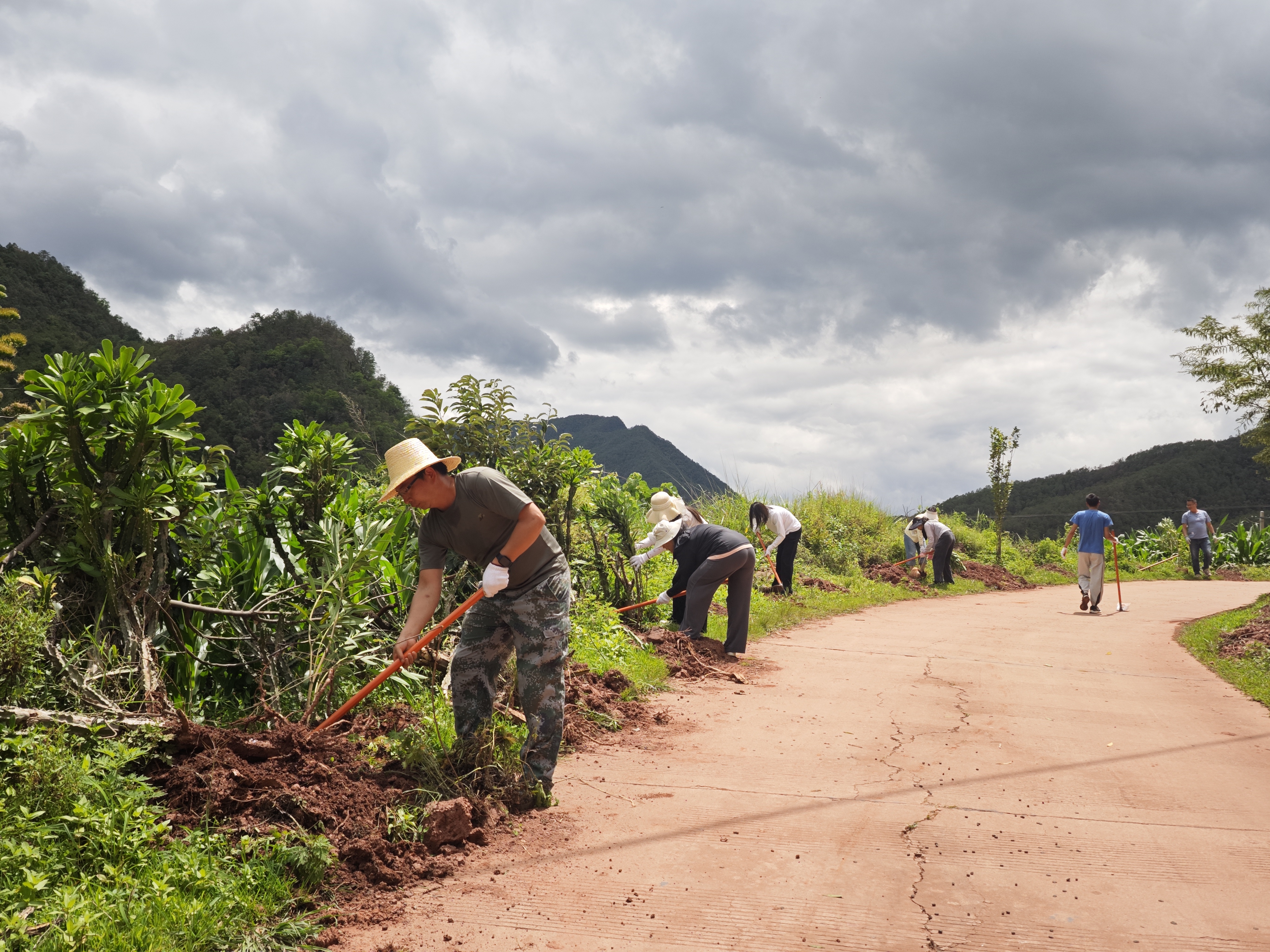 植树现场,大家精神饱满,干劲十足,挥锹铲土、扶树正苗、培土踩实……每个环节都认真细致。经过一番劳动,300多棵夹竹桃在路旁顺利“安家落户”,树株迎风摇曳、生机盎然,为打造绿美公路再添新绿。
