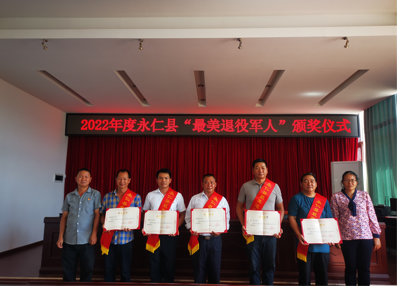 榜样催人奋进,使命呼唤担当。为发挥先进典型示范引领作用,展现退役军人风采,2022年6月,中共永仁县委宣传部 永仁县退役军人事务局举行2022年度永仁县最美退役军人评选表扬活动,通过各乡镇、各单位推荐,经过遴选、征求意见、公示,最终确定5名2022年度“最美退役军人”,并于2022年7月7日,举行隆重的2022年度“最美退役军人”颁奖仪式。中共永仁县委宣传部副部长李正梅,永仁县退役军人事务局党组书记、局长罗永顺出席颁奖仪式。