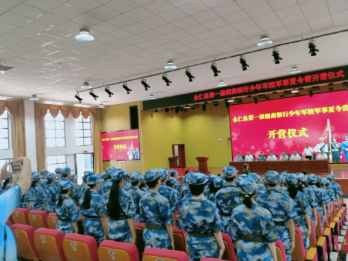 7月16日上午10时许, 在招商银行和县委县政府的关心支持下,我校组织承办的永仁县第一届招商银行少年军校军事夏令营在思源报告厅隆重开营。副县长罗立志、副县长陈元春、武装部副部长杨艳军、教育体育局局长罗雪芹和副局长文俊铖一行出席了本次开营仪式。