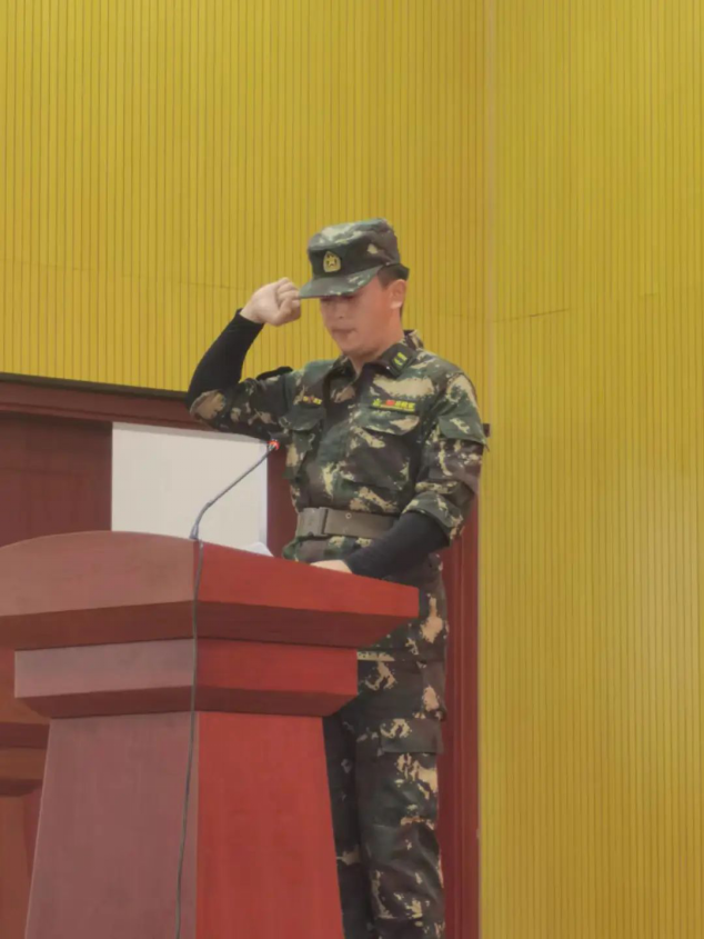 随后,夏令营总教官发表了讲话,强调了举办军事夏令营的必要性并代表教官宣誓,希望学员们通过本次夏令营训练磨炼自身意志,增强斗志,树立修身立人的标准和组织纪律、团结协作的意识。