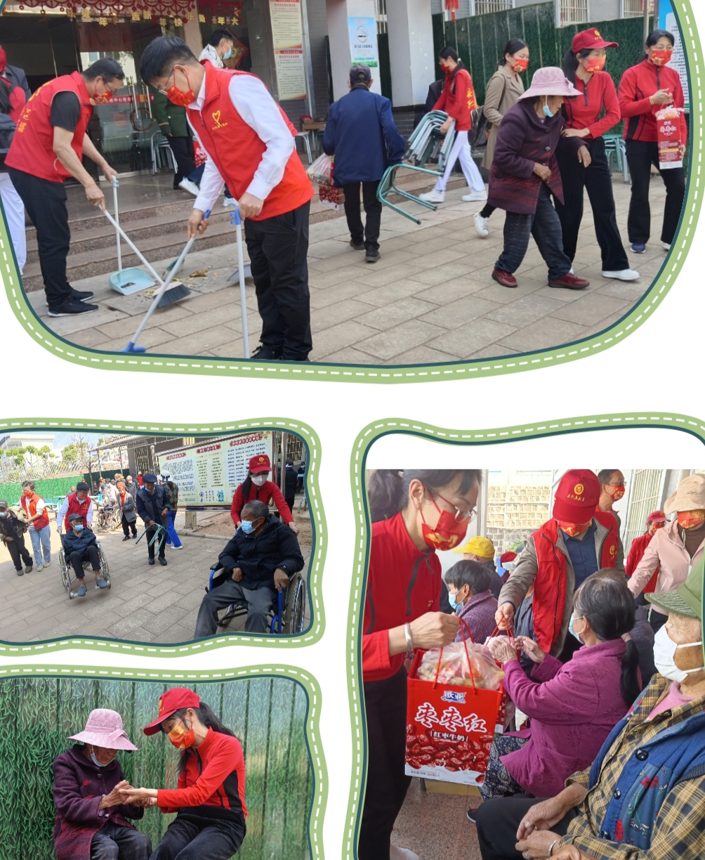 志愿者们为52名老人送上了水果、糖果、牛奶等慰问品,还精心编排了舞蹈、朗诵、现场学游戏等节目,为他们献上了一道精神文化“甜点”。大家亲切地与老人们聊天拉家常,详细了解他们的日常生活情况、健康状况,倾听他们的心事和烦恼,叮嘱他们要注意身体。大家齐动手帮助老人打扫卫生、给老人剪指甲、推老人去晒太阳,为他们做一些力所能及的事。老人们的脸上洋溢着开心的笑容,他们争先恐后地和志愿者握手、交谈,开心得像个孩子,并对志愿者们的这次爱心服务表示感谢。