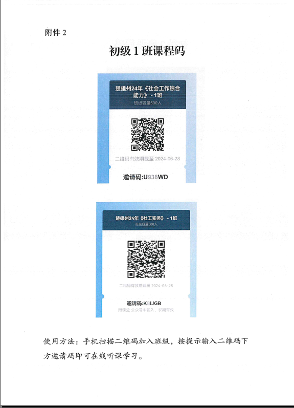 (二)培训时间:2024年6月8日—9日。全县报考初级社会工作者的54人参加初级1班培训,报考中级社会工作师考生可选择初级班随班听课。