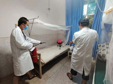 3.演练正式开始。住院部护士发现病房起火,立即大声喊“着火了”“着火了” 护士打电话告诉通讯联络组并临危不乱有序转移患者及家属,通讯联络组立即通知灭火救援组请求支援,并启动应急预案。灭火组成员提着灭火器赶赴火灾现场,熟练运用之前培训中所学到的消防灭火知识,对大火进行扑灭。通过大家的努力,火源最终扑灭。为了让更多参加演习的人员都能有机会实践,卫生院全体职工都得到了演练的机会,对提高大家的消防技能有很大的帮助。