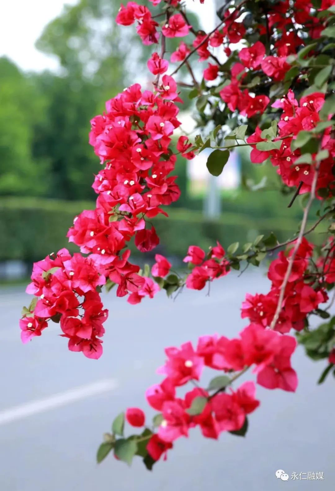 4、三角梅(拉丁名:Bougainvillea spectabilis Willd.):别名:叶子花、九重葛、三叶梅、毛宝巾、簕杜鹃、三角花、叶子花、叶子梅、纸花、宝巾花、南美紫茉莉等。为紫茉莉科,叶子花属,木质藤本状灌木,茎有弯刺,并密生绒毛;单叶互生,卵形全缘,被厚绒毛,顶端圆钝;花很细小,黄绿色,三朵聚生于三片红苞中,外围的红苞片大而美丽,有鲜红色、橙黄色、紫红色、乳白色等,被误认为是花瓣,因其形状似叶,故称其为叶子花。花期可从11月起至第二年6月。冬春之际,姹紫嫣红的苞片展现,给人以奔放、热烈的感受,因此又得名贺春红。叶子花原产南美洲的巴西,大约在十九世纪三十年代才传到欧洲栽培,叶子花喜温暖湿润、阳光充足的环境,土壤以排水良好的砂质壤土最为适宜。