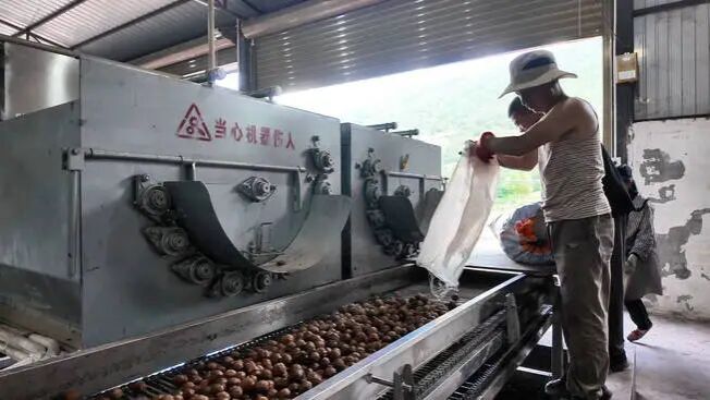 在核桃加工车间同样是一片火热景象,一颗颗新鲜核桃经过烘干工艺处理,化身为香气四溢的熟食核桃仁。本地加工厂的稳定运行,不仅提升了农产品的附加值,更为周边群众提供了就地就近就业的岗位,实现挣钱顾家两不误。