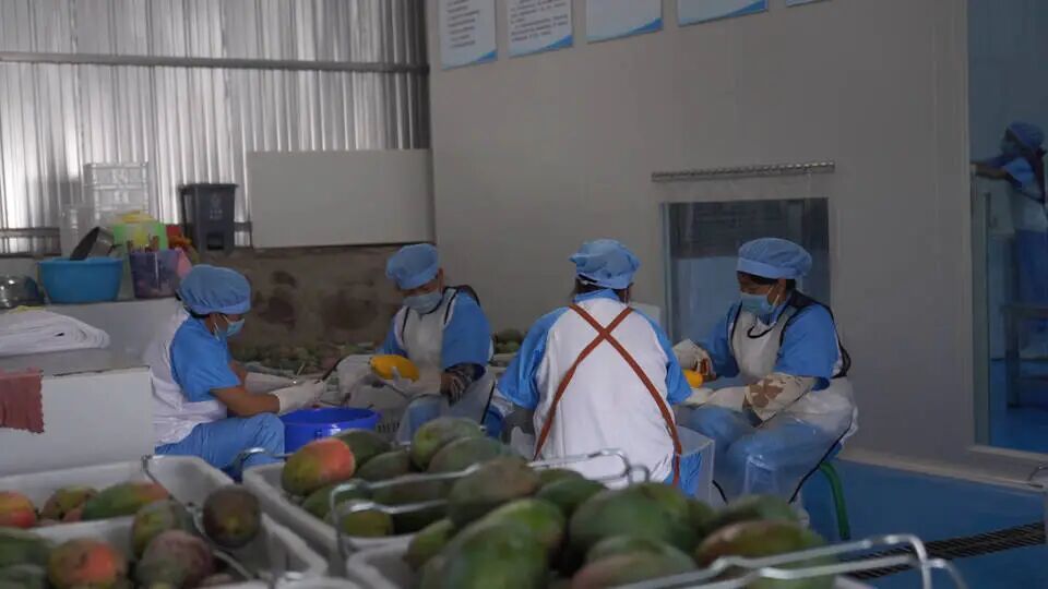 永仁县奔腾食品加工坊工人李会梅告诉记者:“村里建了加工厂对于我们来说是非常好的,自家的芒果可以直接拉来这里卖,平时农活不忙的时候还可以来打零工,一天100多元钱。”