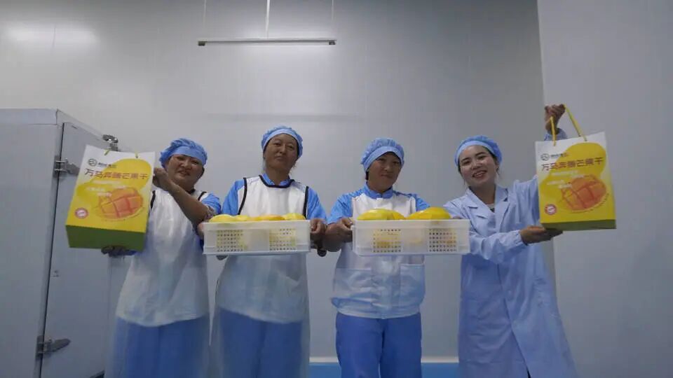走进位于永仁县中和镇的奔腾食品加工坊,一股清甜的果香扑面而来。工人们正在流水线前井然有序地对新鲜芒果进行清洗、去皮、切片、摆盘、烘烤,金黄的芒果蜕变为色泽诱人的芒果干,成为开袋即食的美味零食。