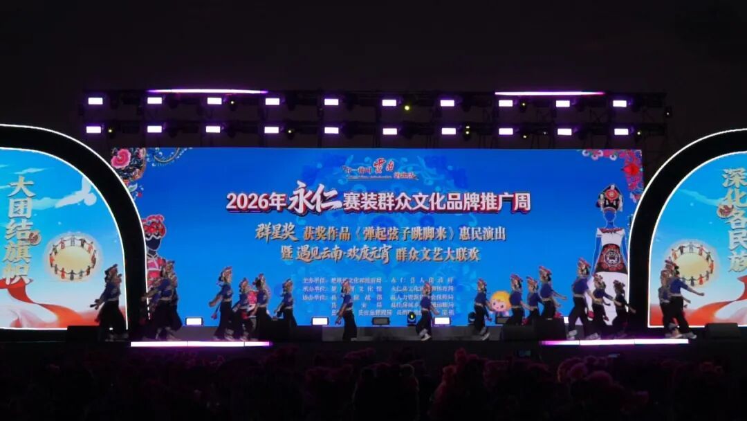 正月十五元宵夜,“万人同裳·永仁赛装群众文艺汇”“篝火燃情·非遗共舞”群众打跳狂欢等活动热闹非凡,当地群众与五湖四海的旅居者同台献艺,不分地域、不分民族,大家踏歌起舞,在欢声笑语中相融相伴,旅居游客在这场盛会中感受家的暖意,诉说着永仁作为“第二故乡”的温情。