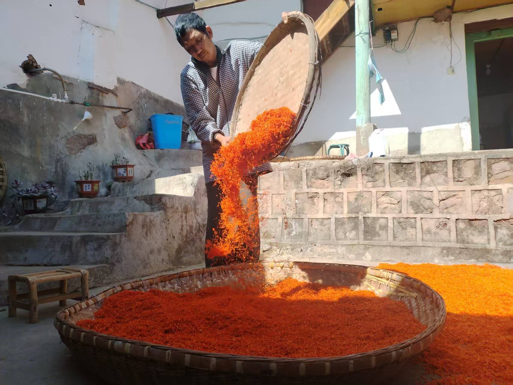 “去年种4亩滇红花,卖了1.6万元,亩均稳定收入4000元以上,比种小麦、蚕豆划算多了!”永兴傣族乡中草药材种植技术协会负责人张喜坤一边忙着采收,一边算起了“产业账”。作为合作社带头人,他熟练掌握种植管理技术,串联起全乡种植户的产销之路,成为产业发展的领头雁。
