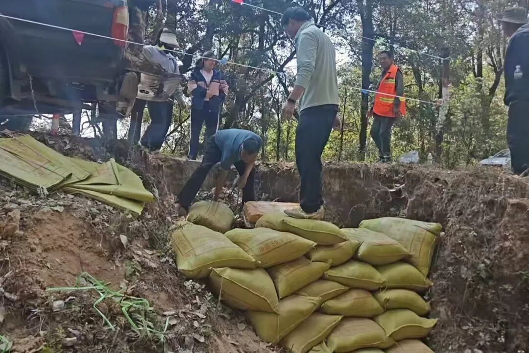 在永兴傣族乡这样的深山乡镇,面对临崖、易塌方路段密布的难题,干部群众同样因地制宜:悬崖急弯处,一袋袋砂土垒成坚实的防护墙;道路两侧,碗口粗的木桩深扎泥土,刷上红白漆后格外醒目;险要路段,红黄警示彩带迎风舒展,为过往车辆系上“安全带”。村民张显瑜说:“给木桩穿上花衣裳,路就有了方向。”这些朴素设施成本极低、安装快捷,却能在关键时刻挡住危险。当地还构建起“民警+乡村干部+两站两员+护林员+网格员”五位一体的监管体系,群众通过“随手拍”快速上报隐患,形成“早发现、早上报、早处置”的闭环管理。