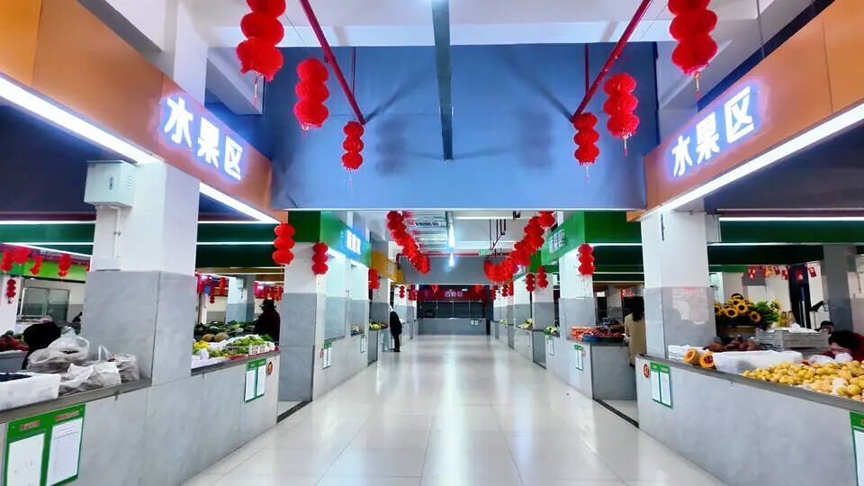 在玫瑰阳光城集贸市场,原本昏暗的过道如今明亮通透,公厕加装了挂钩和镜子,卖肉摊位从1家增至2家,豆腐摊位、便民豆花店、超市等业态陆续入驻。
