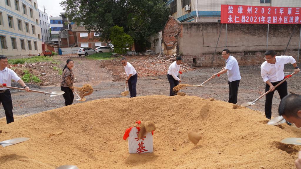 夭建国宣布永仁县2021年老旧小区改造及市政基础设施配套建设项目开工。