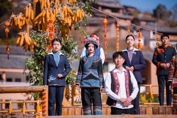 浓烈的节日氛围感染着抖音达人,他们也纷纷穿上了色彩艳丽的民族服装,与模特登上舞台,共同演绎了一场别开生面的时装秀。
