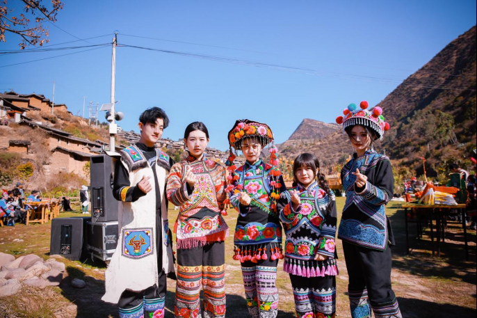 除了令人惊艳的传统村落,云游队伍还来到了外普拉村赛装节活动现场,作为此次活动分会场之一,外普拉村此时处处洋溢着过节的欢快氛围,身穿当地民族特色服饰的村民们相聚一堂,通过直播镜头,唱歌跳舞,向世界展示着专属于阳光永仁的特色节庆。