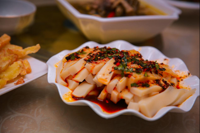 一方水土养一方人,也造就了一方美食的独特味道,活动现场,抖音达人在主持人的带领下品尝了永仁经典美食——“宜就五绝”,宜就石磨凉粉、他克纯酿小灶酒、龙泉豆花、羊汤锅、手工麦芽糖,可口的美食引得达人们接连点赞。