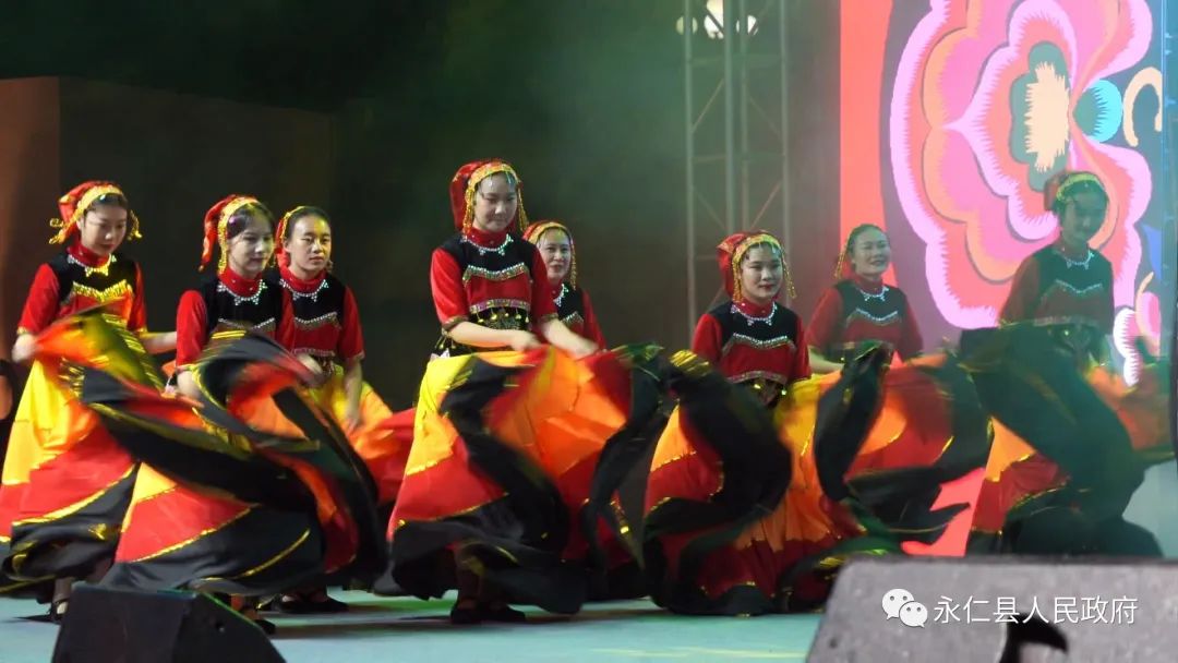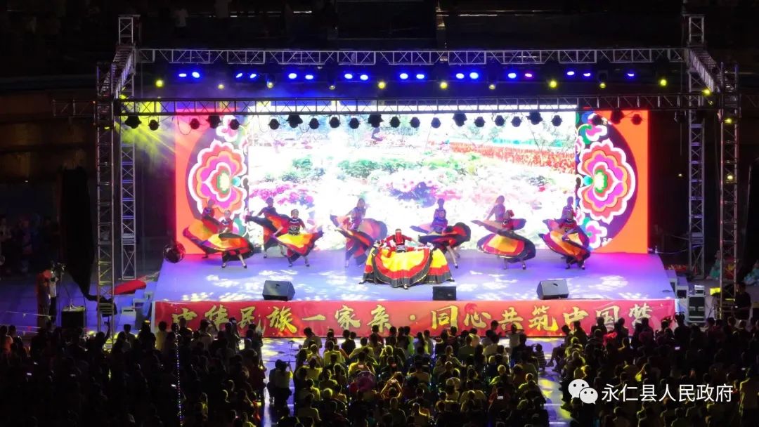 晚会分为火把之约、火把之韵、火把之欢三个乐章,在彝族舞蹈《花桥喊歌》中拉开序幕,激情的演唱、优美的舞蹈等精彩节目纷纷登台,《朝里若朝拉若》《彝娃绣花献给党》等文艺节目,创作编排形式新颖,突出了永仁民族文化特色,展示了永仁县的民族风情和深厚的文化底蕴。永仁牧羊兄弟组合带来的原创器乐演唱《火把之夜》《赛装之恋》及永仁县非物质文化遗产代表性传承人的彝族器乐演奏《月光下的跳歌场》充分展现了彝家儿女对美好生活的向往。台上演员表演得精彩绝伦,台下的观众看得目不转睛,阵阵欢声笑语萦绕在舞台周围,精彩的演出得到了广大群众的一致好评。