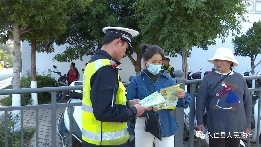 随后,永仁县公安局交警大队还在城区人员密集区域向市民发放了交通安全宣传资料,让大家更加深入地了解交通安全知识。