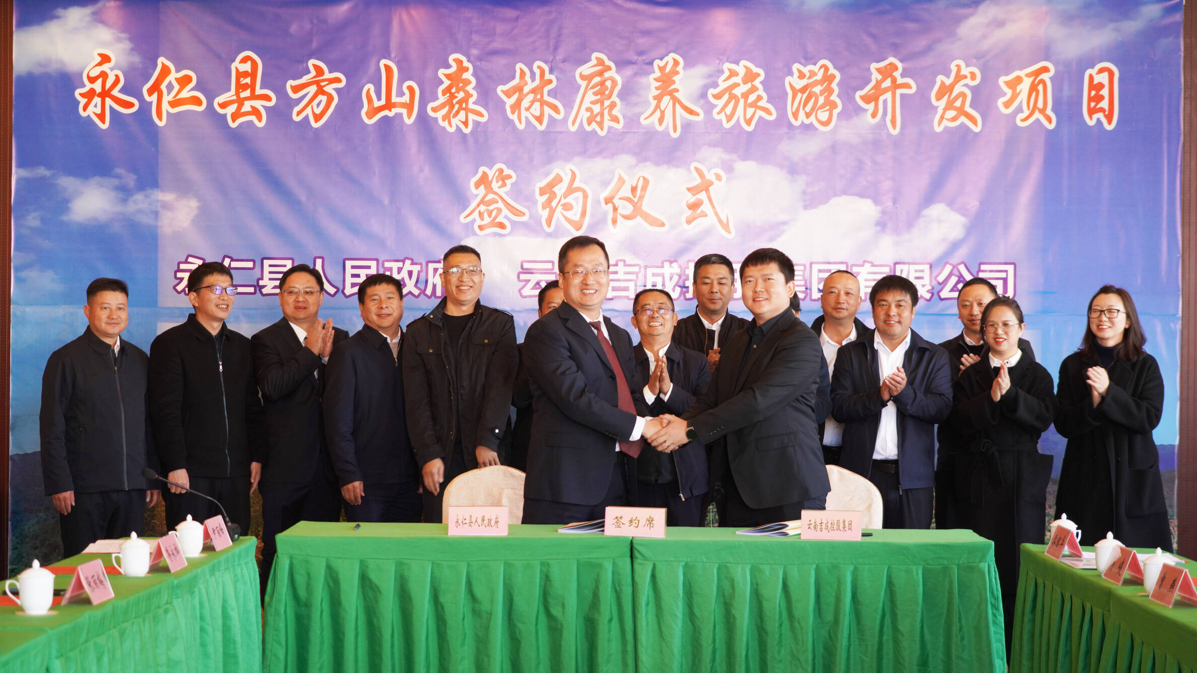 县委副书记、县人民政府县长彭鉴,县人大常委会主任张丽梅,县政协主席罗翠明,云南吉成控股集团有限公司董事长、总裁陈吉虎,副总裁傅迎春等出席活动。双方表示将以此次项目签约为契机,围绕“阳光永仁”——“绿荫”方山,高质量建设、高效率推进,打造高品质、复合型生态避暑胜地,高水平运营方山森林康养旅游开发项目,合力盘活方山资源,共同开拓永仁旅游新篇章,为永仁“中国阳光城•四季康养园”的建设贡献力量。