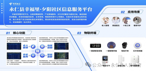永仁县委、县人民政府与中国电信楚雄分公司合作共同建设了“幸福里·夕阳社区”智慧养老平台,创新打造农村居家养老服务“5W”模式,打通农村留守老人服务堵点,破解居家养老难题,打造永仁县“幸福里·夕阳社区”品牌。