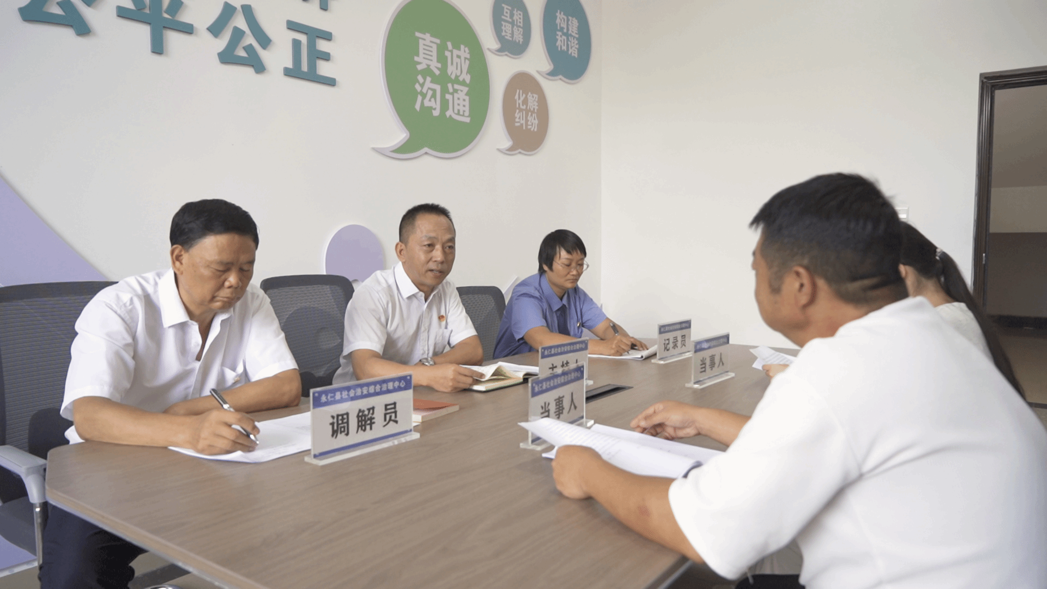 夕阳西下,李大哥整理完案卷,抬头看到墙上“为民、务实、高效、公正”八个大字——这不只是标语,更是他和同事们日常工作的底色。李大哥是永仁县三级综治中心调解队伍的缩影。