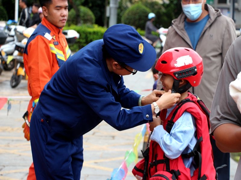 现场互动环节,通过装备展示、防灾减灾宣传、开展志愿者服务等内容,向群众普及消防知识,凝聚安全共识。宣传员一边向过往群众发放宣传单和宣传手册,一边讲解日常防火小技巧、灭火器扑救初期火灾的操作步骤,以及公共场所与家庭防火常识、家庭火灾隐患排查要点等贴近生活的消防安全常识,并结合群众身边的典型火灾案例,讲解正确逃生方式,提升群众火灾防控意识与自救能力。