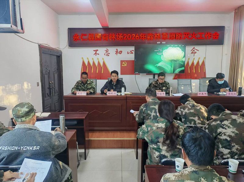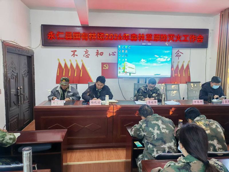 为深入贯彻落实省、州、县森林草原防灭火工作会议精神,压紧压实防火责任,筑牢林区安全屏障,永仁县国有林场于近日组织召开2026年度森林草原防灭火工作会议,同步开展防灭火避险安全知识培训。林场领导班子、场部全体职工、各片区党支部书记、副书记、主任、副主任、各管护点点长以及全体党员共计44人参加会议。