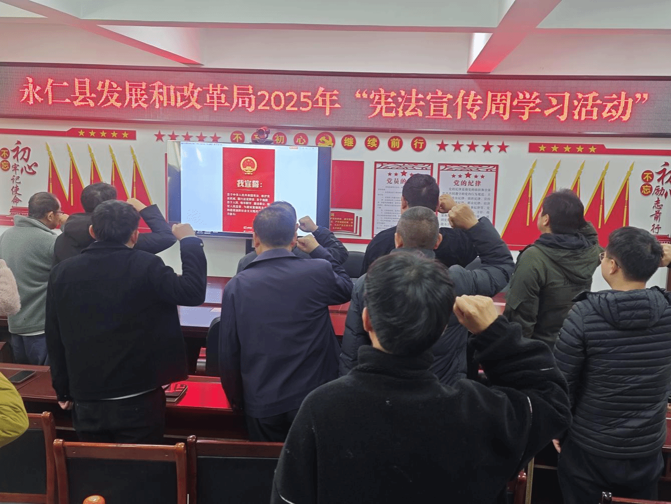 为深入学习贯彻习近平法治思想,彰显宪法权威,强化公职人员法治意识与履职担当,近日,永仁县发展和改革局组织开展宪法宣誓仪式。全局新任命干部、新入职人员及骨干代表面向国旗庄严宣誓,以铮铮誓言筑牢法治信仰,凝聚依法履职的奋进力量。