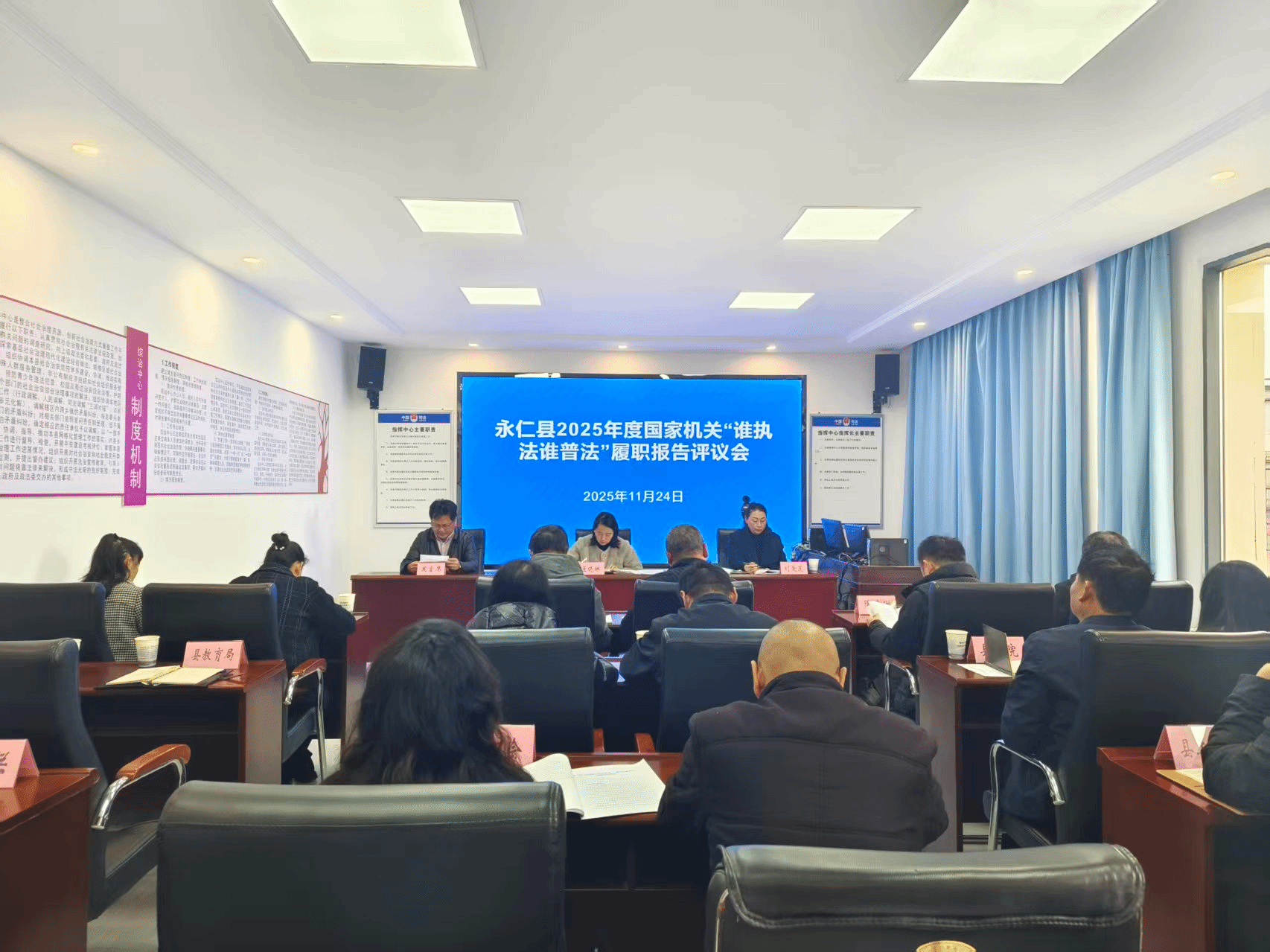 为扎实推进“八五”普法收官与“九五”普法谋划衔接,压实普法主体责任,近日,永仁县召开2025年度国家机关“谁执法谁普法”履职报告评议会。评议团成员、各普法成员单位及1个乡镇、4个县级被评议单位分管领导参加会议。