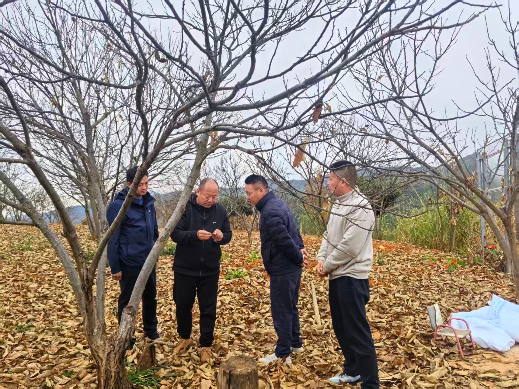 宛延副县长一行深入田间地头,仔细查看板栗树的生长态势、修剪状况及土壤墒情,现场听取乡镇负责人、技术人员及种植大户关于当前板栗冬防工作开展情况的汇报。
