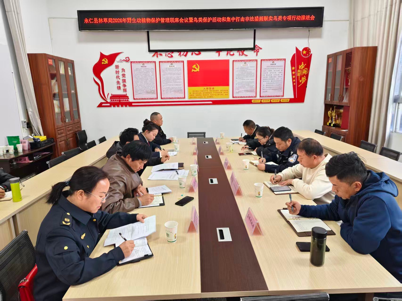 永仁县林业和草原局于1月26日组织召开2026年野生动植物保护管理联席会议,同步启动鸟类保护系列活动及集中打击非法猎捕贩卖鸟类专项行动,凝聚多部门合力守护生态安全。