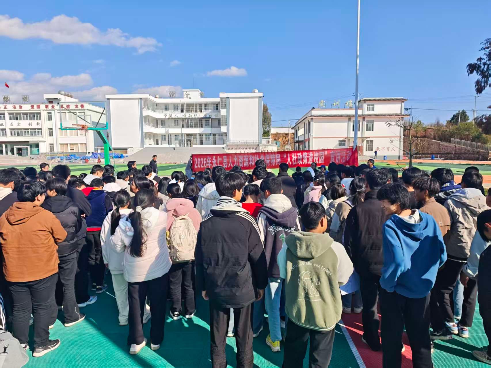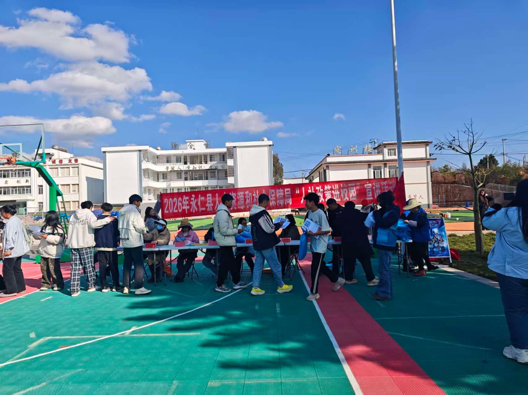 为破解就业结构性矛盾,搭建人才供需精准对接桥梁,推进就业创业政策宣传工作。近日,永仁县人力资源和社会保障局联合永仁县职业高级中学在永仁县职业高级中学运动场举办“职引未来—2026年永仁县人力资源市场高校毕业生就业服务专项招聘会”。永仁县职业中学在校学生及其学生家长、永定镇、莲池乡农村劳动力、失业人员、应往届高校毕业生200余名人员参加专场招聘活动。