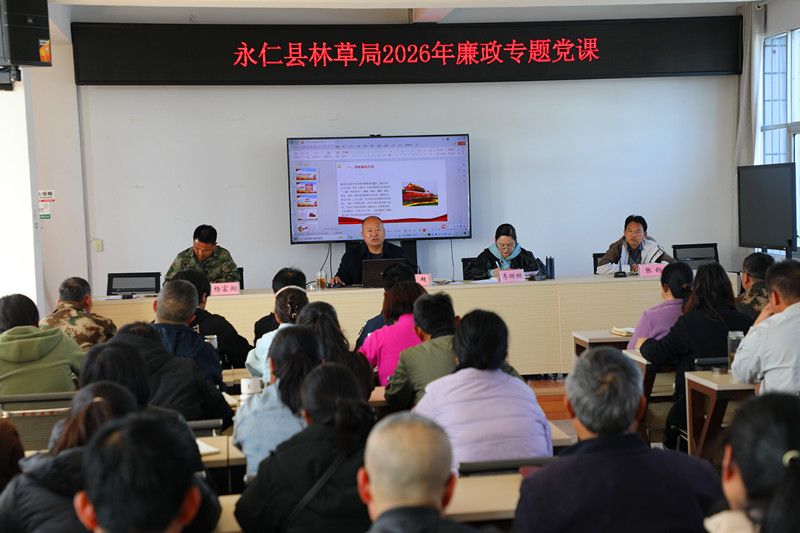 为进一步筑牢全县林草系统干部职工廉洁自律思想防线,营造风清气正的节日氛围,2月12日,永仁县林业和草原局组织开展2026年党委书记讲专题廉政党课暨春节前廉政提醒谈话会议。局党委书记、局长王超主持会议并进行专题授课和集体谈话,局领导班子成员、局机关全体干部职工、方山管护局机关职工,国有林场场部职工参加会议。