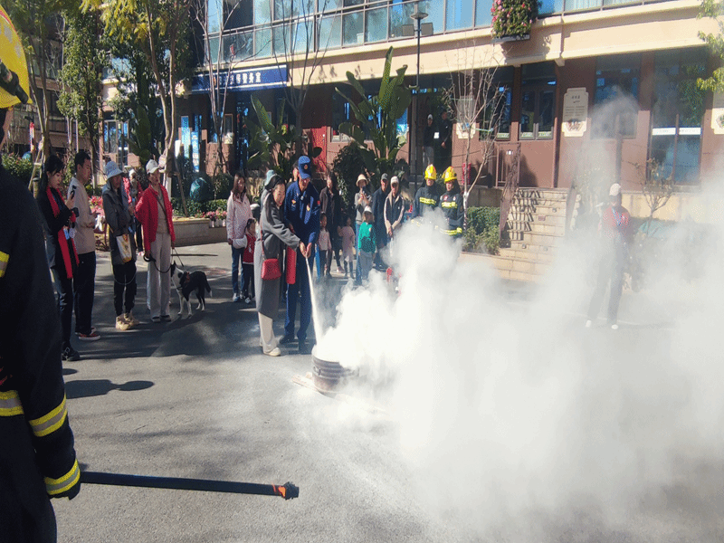 活动现场设置了消防器材展示区,消防宣传员逐一讲解干粉灭火器、灭火毯、应急逃生绳等常见器材的功能、适用场景及日常维护要点。现场模拟院坝杂物起火场景,演示干粉灭火器“一提二拔三握四压”操作流程,并组织小区物业员工、安保及老年志愿者分组实操,确保每个人都能熟练掌握灭火技能。