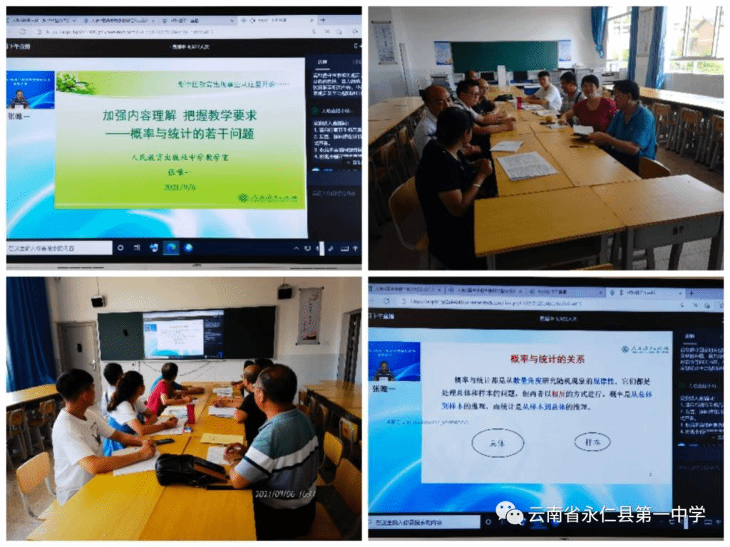 2021年9月14日—9月15日,永仁一中数学教研组的高中教师们在招银楼402室,参加了线上人教A版高中数学教材经验交流暨培训会。本次线上培训会由数学教研组长李翠老师组织。本次活动的主题是:人教A版高中数学教材经验交流。这次的网络培训,如同一场可贵的春雨,及时地滋润了我们干涸的心田。网络培训让我们站在“高处”把握了教材的主题、理念与框架。也给了我们很大的启发:在教材研读方面,我们要肯下苦功夫。新学期,新教材,新挑战。虽不能轻车熟路,但不得不说,这次网络培训真的很给力。当然,探索学习之路永无止境——我们会努力不懈,只求更好!