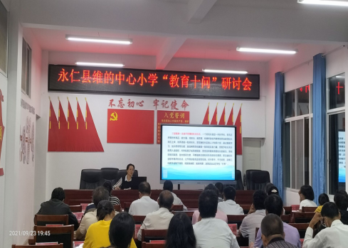 9月23日,永仁县维的中心小学召开了“教育十问”研讨会。会上,教育工会主席殷朝勤带领全体教师深入学习了9月9日县委书记吴亚峰同志和彭县长在教育工作大会上的重要讲话精神。要求广大教师结合本次大讨论活动任务,进一步牢固树立永仁县十四大党代会“四立四破”意识,切实从责任方面找差距、管理方面找短板。要向张桂梅、梁达松、朱卫星等有教育担当的老师学习。作为教育工作者,要把职业当作事业,不忘教师初心,牢记育人使命,兢兢业业教书,勤勤恳恳育人。结合小县要有大作为、小县要有大发展解放思想大讨论,逐一破解十个“怎么看”“怎么干”问题。要求全体教师以“立德树人”为根本任务,向管理要质量,向教研要质量,向课堂要质量。促进学校各项工作突破性发展。