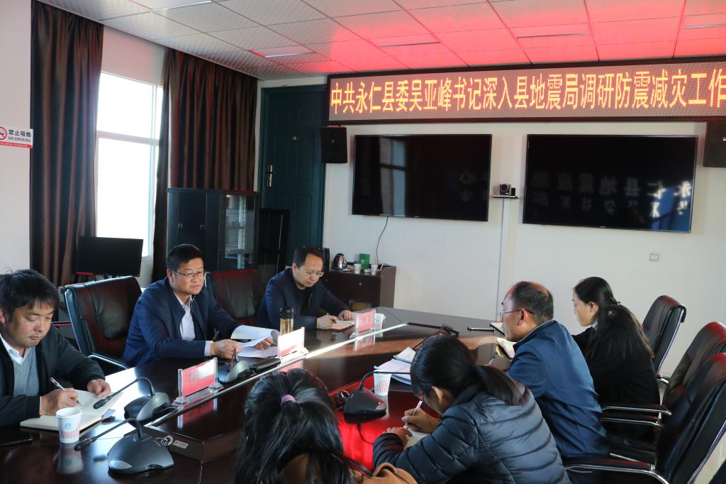 1月11日下午,中共永仁县委书记吴亚峰深入县地震局调研防震减灾工作,县委常委、县委办公室主任鲁永祥、县人民政府常务副县长李春俊陪同调研。