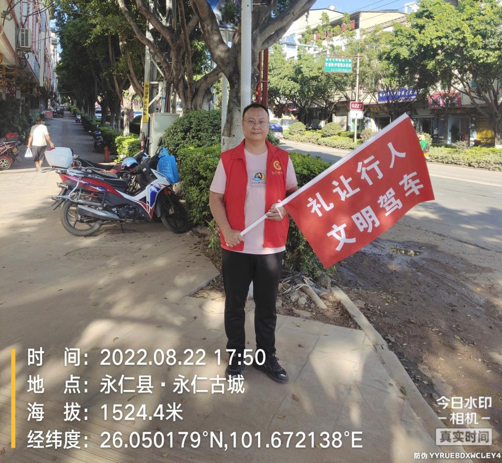 强化志愿服务。扎实做好“文明永仁你我同行”志愿服务活动要求,目前已安排专人在仁民路与永桥路交叉路口开展文明劝导志愿服务活动10人次。文明交通劝导活动中,轮值的干部职工对不规范的行车行为积极进行交通劝导,对骑电动车不戴头盔、开车不礼让斑马线等行为劝导12人次。并积极对过往市民群众宣传遵守交通法规,做到规范行车、安全行车等交通文明知识8次。