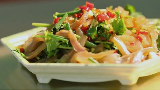 永仁凉拌驴皮最为人称道的是劲道的口感,弹性十足,又十分入味。一端上餐桌,那黄、红、青三色的搭配和驴皮片的晶莹剔透,秀色可餐,让人食欲大增。入口一片,糯滑清爽与麻辣鲜爽融合,层次丰富,香而不腻。