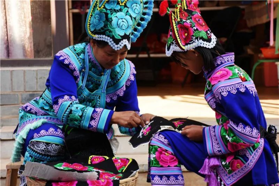 永仁彝族刺绣,源于中和镇直苴村,直苴村有一个古老的赛装节,距今已经一千三百多年,是最早的“T台秀”。