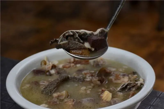 宜就第三绝,是羊汤锅,食材选用本地黑山羊,配以花椒、辣椒等蘸水佐料,便是上好的美味。